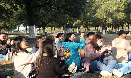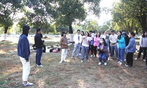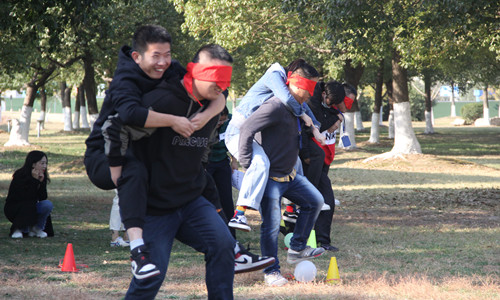 此次培训先后开展了“仙人指路”、“螃蟹赛跑”、“你比我猜”、“三人四足” 等四轮拓展培训活动。参加活动的辅导员分为6组,每组队员来自不同的系,大家在最短的时间内制定各自队名、标志和口号,形成了团队核心,初步构建团队模式。在活动中,队员们团结一心、齐心谋划、互相鼓励、奋勇争先,从最初的磕磕绊绊到渐入佳境,最终圆满完成了全部拓展训练项目。