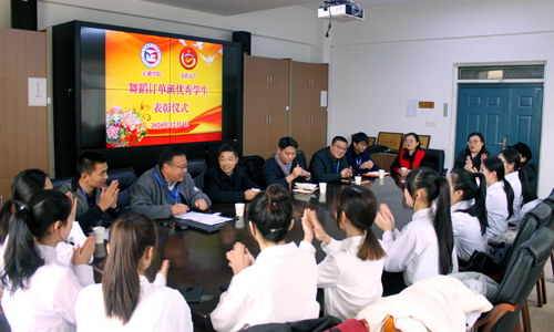 随后,詹勇虎也对订单班同学们提出了希望和要求。他说,在校企双方领导、老师们的共同关心与支持下,订单班同学们在学习文化专业知识的同时,苦练舞蹈基本功,参加了省市区及学院的多项重大演出活动,取得了优异的成绩,赢得了包括省市区各级专业文艺团体的赞誉,希望同学们继续努力,不断进步。他希望同学们要能吃苦,要对企业忠诚,思考自己会为企业带来什么,评估自身是否达到企业的要求,要为企业所用,未来的成功要靠“坚持”二字,只要坚守信念,路就越走越平坦!希望同学们再接再厉,继续提高专业本领,为校企合作作出更大的贡献。