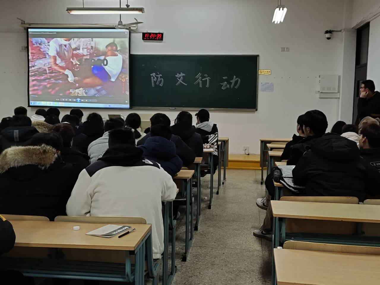 活动开始,辅导员曹宁通过讲解PPT阐明了艾滋病对人类的危害,介绍了艾滋病的传播方式,以及预防艾滋病的方法。随后播放了全国首部校园防艾滋病警示教育微电影《让青春无悔》。同学们观看完警示教育微电影后参与了预防艾滋病网络知识竞赛答题活动。