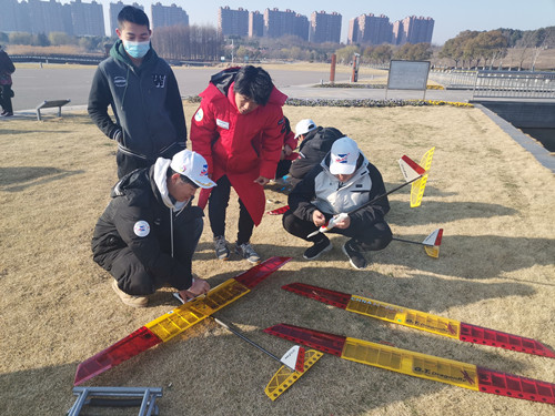 虽然寒假已然开始,但在户外露出 无人机应用技术校外实训基地里,依然活跃着正德学子的身影,他们白天在训练场顶着严寒实飞,晚上在住宿点或是在搭建组装飞机,或是在电脑前进行新机型的模拟飞行,自放寒假以来包括春节期间他们一直在训练场或住宿点内学习。近日,电子与信息技术系副主任赵欣、无人机专业负责人徐宏庆、辅导员孙军辉、李兰香、张智灏一行前往江宁区莲花湖无人机训练场看望慰问寒假留宁冬训学生,并深入校外住宿点了解关心学生的学习生活情况,向学生传达电信系的关怀。
