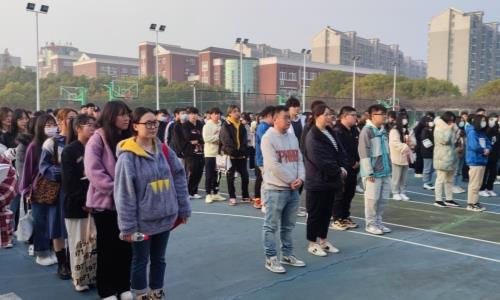 2021年3月15日星期一清晨,经管系在篮球场隆重举行新学期首次升国旗仪式。户外露出 团委书记黄晓帆、经管系副主任祖国、辅导员代表以及经管系全体学生参加升国旗仪式。