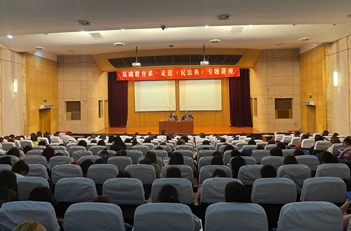 为进一步强化学生的法律意识,增强学生学法懂法,自觉践行法律的主动性和自觉性,2021年3月25日,基础教育系邀请了江苏承匠律师事务所合伙人、党支部书记刘媛媛律师,为该系全体大一学生作了一次走近《民法典》主题讲座。