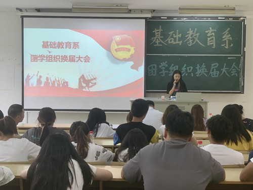 6月17日中午,基础教育系在1102教室举办团学组织换届大会。系党支部书记杨卫东、系团总支书记吴美仪以及辅导员嵇姗、沈言静、吴春凤共同参与换届评选工作。通过本次换届大会,以公开竞选、公平竞争、公正选拔、择优录取的原则,招聘优秀的学生会干部。