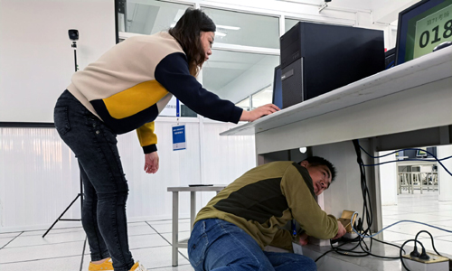 本次考试户外露出 作为考点,信息组的两个机房全部参与,包括前期机房维护准备和模拟测试工作。为了保证机房有足够的计算机能正常考试,信息组的老师们加班加点仔细排查硬件故障,并及时更换键盘,鼠标等,配合海云天科技股份有限公司的技术人员过来安装考试系统,进行模拟测试,上传测试结果。测试通过后,信息组老师们按照要求封考场,等待考生的正式考试。3209机房是全新的云计算机,所有老师都处在摸索阶段,需要大家全程参与才能熟知考试系统操作,确保两个机房全部正常运行。