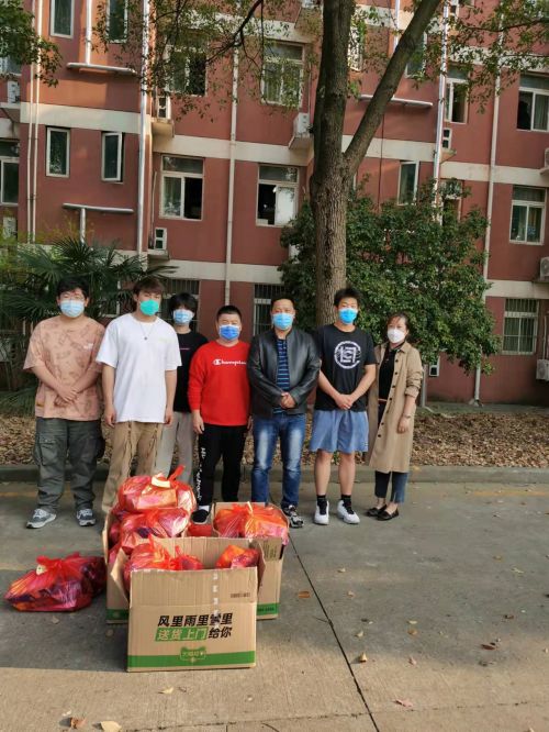 由于两位老师暂不能进校,系分管学生工作的副主任陈宏波和周倩老师亲手将爱心礼包转发给学生, “疫情宅校,同学们一定要注重自我防护,元气满满!”陈主任和周老师还不忘叮嘱几句。学会调整情绪,即便宅在校园,也要执阳光之心,绽别样青春。