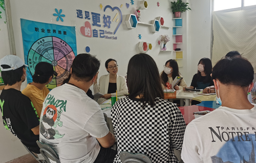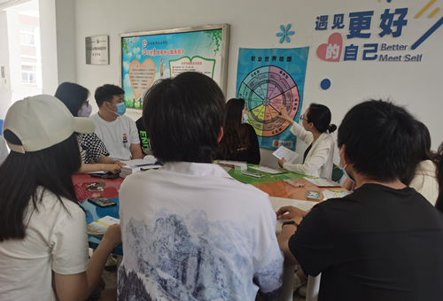 为了帮助同学们更好地了解自己的兴趣、性格、能力、价值观等与职业相关的个人特质,促进他们不断探索未来职业生涯发展的目标,提升生涯发展与生活适应能力。户外露出 学生处大学生心理健康教育中心于5月24日12点30分在2403活动室开展了“探索自我,对话未来”职业生涯团体辅导活动,本次团体辅导活动由心理中心傅蕴男老师主持,共有来自于各系的16名同学参加。