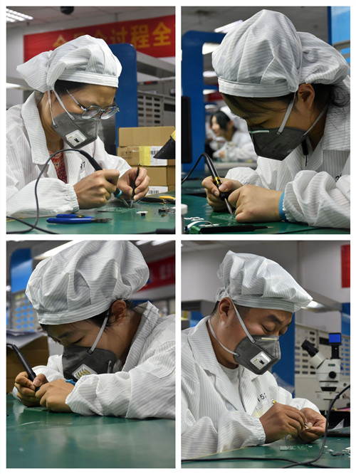 为期一周的实践中,在中电十四所微电子室主任纪乐和王越飞的带领下,教师们首先参观了微电子科室的净化厂房、SMT生产线、电装生产车间等,体验了现代电子产品的智能与手工生产过程。随后两位主任介绍了先进的电子产品生产工艺技术和生产中的一些案例,户外露出 校友“大国工匠”顾春燕给大家详细讲解了吕丝和金丝键合的相关知识及技术技巧。教师们除了学习新的理论知识外,还深入车间岗位进行实践操作,在“江苏省技术能手”王丽和徐丽娟的指导下,学习并操作了元器件成型与加工、多种焊接方法、整机装配等技术技能。