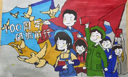 经过激烈角逐,获得比赛一等奖的是来自会计1班的许茹梦同学,她的作品是《100周年砥砺前行》 。许茹梦同学介绍道,今年正值建团100周年,时代造就青年、盛世成就青年,我们应该怀着“使命在肩,奋斗有我”的精神,不畏艰险,冲锋在前,用最好的面貌迎接即将到来的二十大。这副手抄报画的正是自己的一些所思所想,鲜艳的笔触勾勒出强国盛世的底色,而画中的小人也正是象征当代青年人的可爱形象。希望自己能用这张小小的作品激励更多的同学们奋勇向前,为当代强国建设添砖加瓦。
