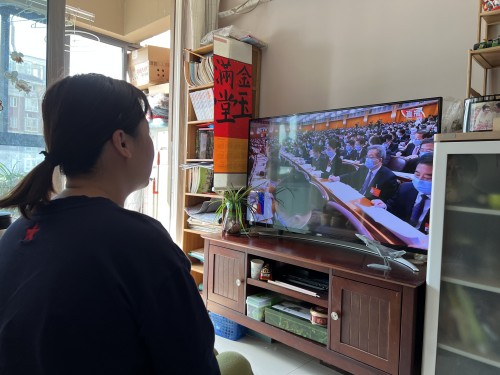 支部党员王珊珊表示身为一名教育工作者,无论是在不同学校、还是在不同专业、不同岗位,都要有着对新时代美好生活的真切感悟,也都对党和国家美好未来满怀憧憬。“心有所向,路必不远”,带领新时代的青年学生乘着青春之光,永葆“赶考”的清醒与坚定,奋进新征程,建功新时代。