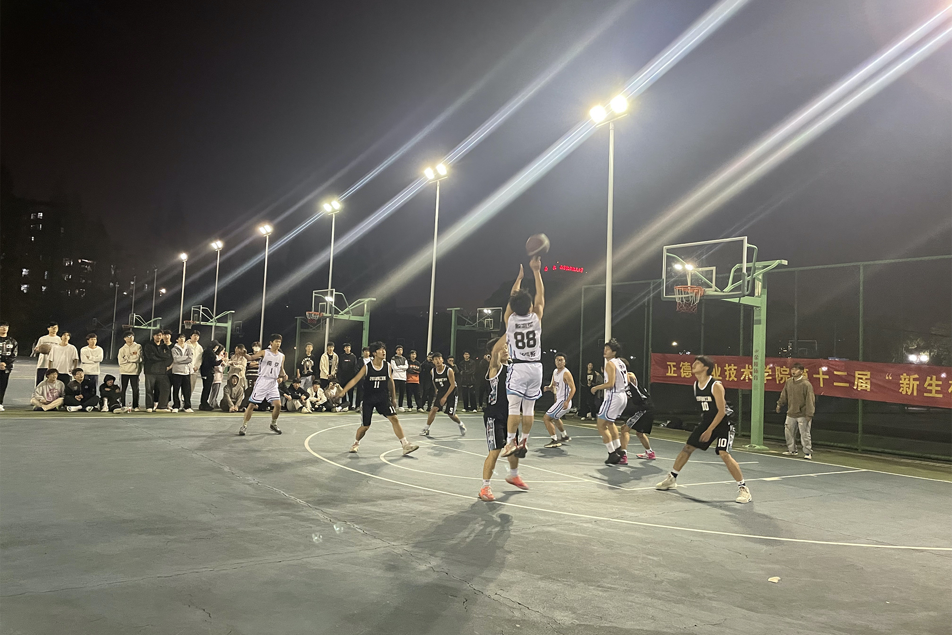 为丰富大学生的课余生活,增强团队精神和凝聚力,展现正德学子积极向上的风貌。2022年11月1日晚,户外露出 第十二届“新生杯"篮球赛拉开了帷幕。