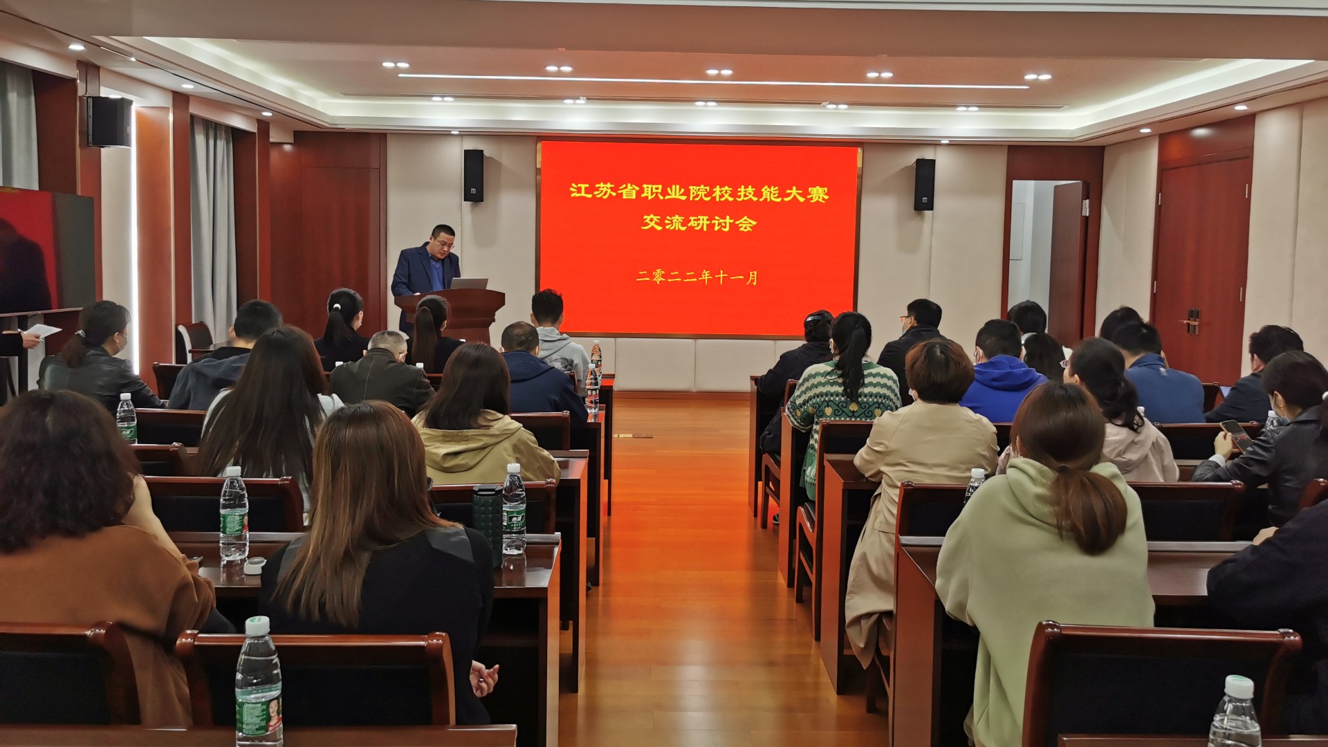 11月10日下午,教务处组织了2022年江苏省职业院校技能大赛交流研讨会。教务处处长王俊、副处长张丽娟,参赛师生代表等参加了交流研讨,会议由教务处副处长陆松主持。