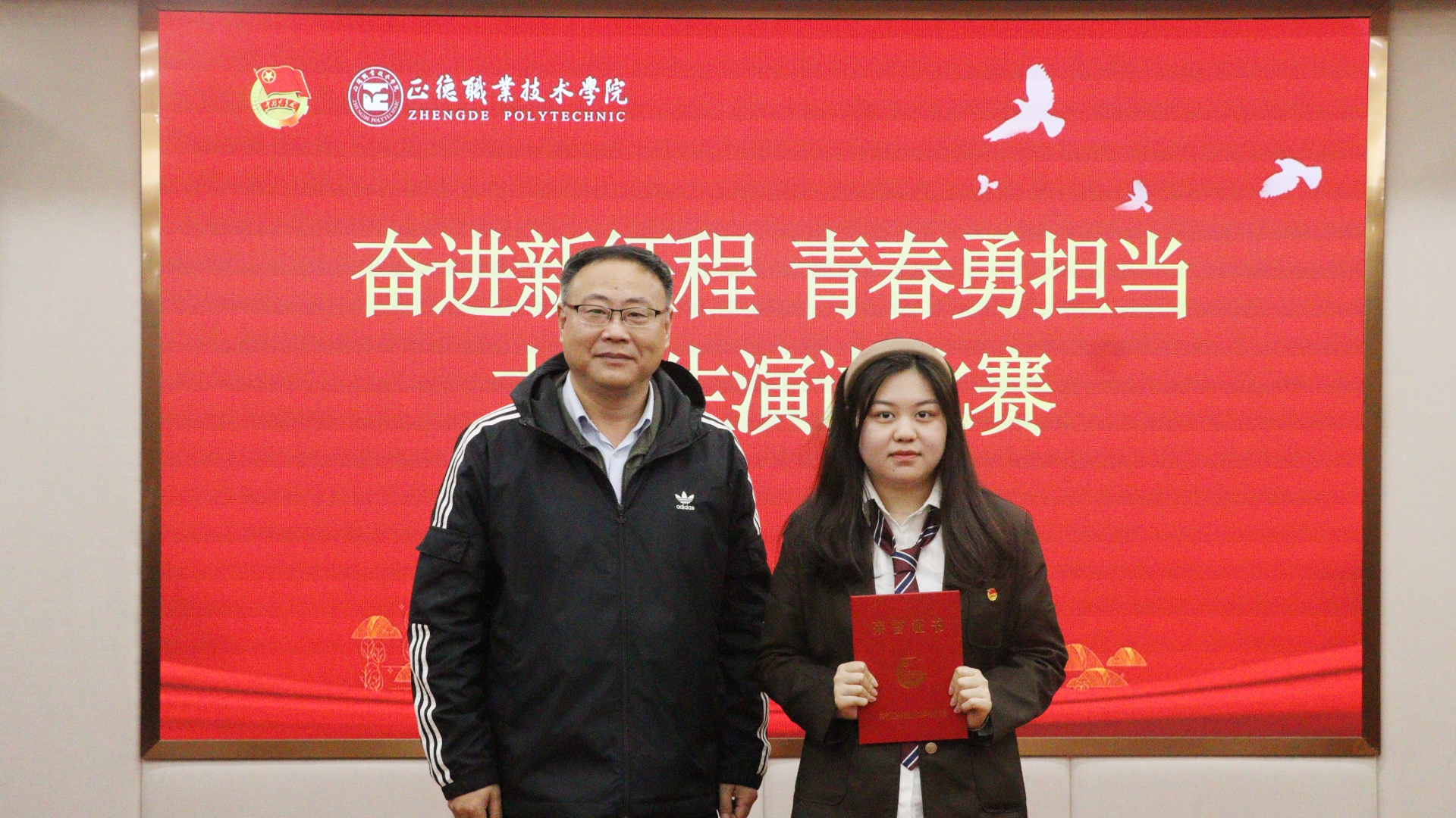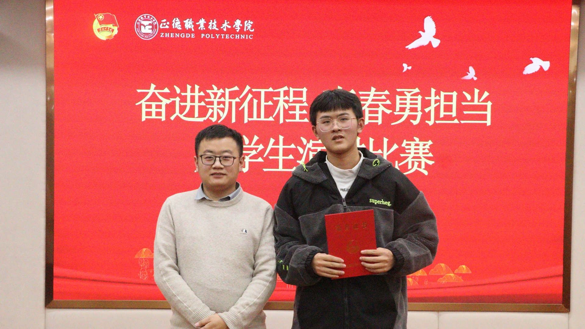 比赛现场,选手们围绕“奋进新征程,青春勇担当”的主题,或激情澎湃、或深情含蓄、或娓娓道来,诠释了自己对时代使命、对中国复兴、对青春年华、对中国梦的理解,从自身的成长、生活经验、学习体验出发,讲述着中国共产党领导下新时代青年们奋发向上的故事,用饱满的热情和真挚的感情表达了新时代青年的坚定信念,用激昂的斗志和铮铮的誓言诠释了当代大学生的初心使命,充分展现了正德学子积极向上、自信从容的精神状态。
