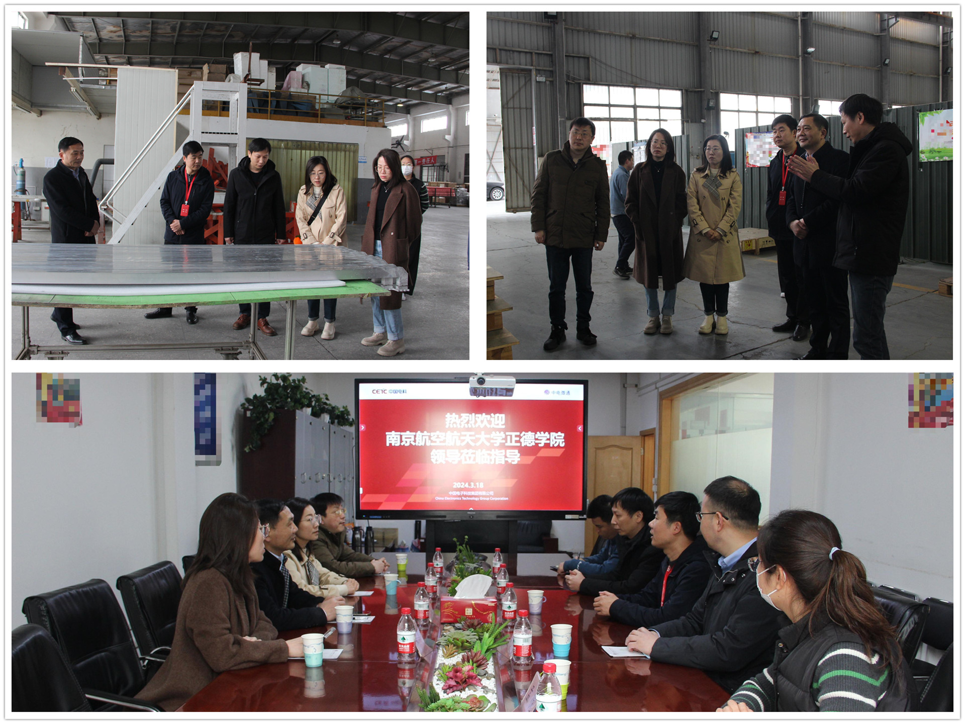 上午,在综合管理部主任倪文俊、李卿卿和中电微通副总经理印小忠等的陪同下,江爱华一行参观了51所的综合展厅和微组装产线、中电微通微波波导管生产线。在校企座谈会上,江爱华介绍了正德学院的办学历史和育人成果,希望双方能探索产教一体育人模式,推动更多创新资源汇聚,为国防军工培养更多高质量的技术技能人才。刘佳主任介绍了电子与信息技术系的专业设置及与南京地区军工企业的合作情况。双方就教育数字化转型背景下的校企课程共建、师资流动、岗前培训前置等方面深入交流,达成了诸多共识。