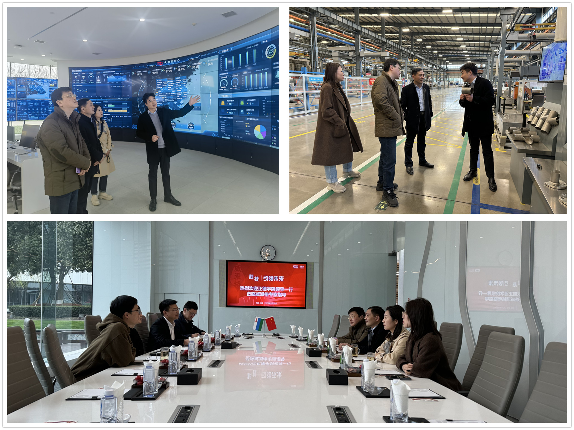 下午,江爱华一行走访了威派格,公司CTO研究院院长薛浩、软件交付部总监戴万强等陪同参观了智慧水务展厅和智慧工厂。在座谈会上,双方回顾了2023年6月薛浩、曾秋菊到访正德学院之后的智慧水务的产业发展和职业教育的发展变革,双方就人才培养、特色课程开设、学生实习就业等问题达成了多项合作意向。