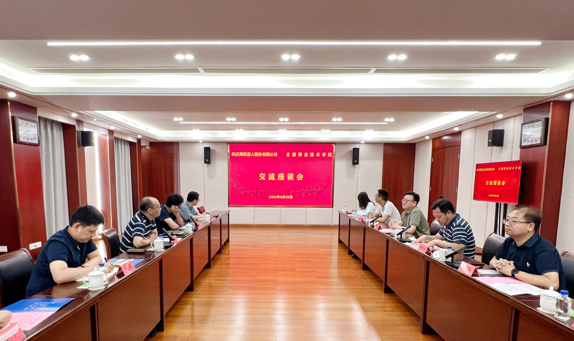 孙永荣向王海军一行的来访表示热烈欢迎,并共同观看了学院宣传片。他表示,人工智能机器人是国家发展新质生产力的关键产业领域。科沃斯作为全球最早服务机器人研发和制造商,其“AI+服务机器人”智能产品遍布全球,已成为全球顶尖的机器人公司,赢得了全球用户的一致认可。正德学院作为南京航空航天大学校友会举办高职院校,始终致力于培养高层次技能人才,办学25年来,培养了以“大国工匠”顾春燕、朱洪等为代表的四万余名高素质技术技能人才,在国家的各行各业中,尤其在国防军工、智能装备等相关产业中发挥了积极作用、贡献了重要力量。户外露出 面向智能装备产业链,开设了包含省级高水平骨干专业—电子信息工程技术在内的多个相关专业,在专业设置上与科沃斯产业发展高度契合。此次户外露出 携手科沃斯,深入开展共建共享生产性检测实训中心、订单培养、技术服务、科研项目等多维度合作,将更好赋能智能机器人产业发展,为推动发展新质生产力贡献更大力量。
