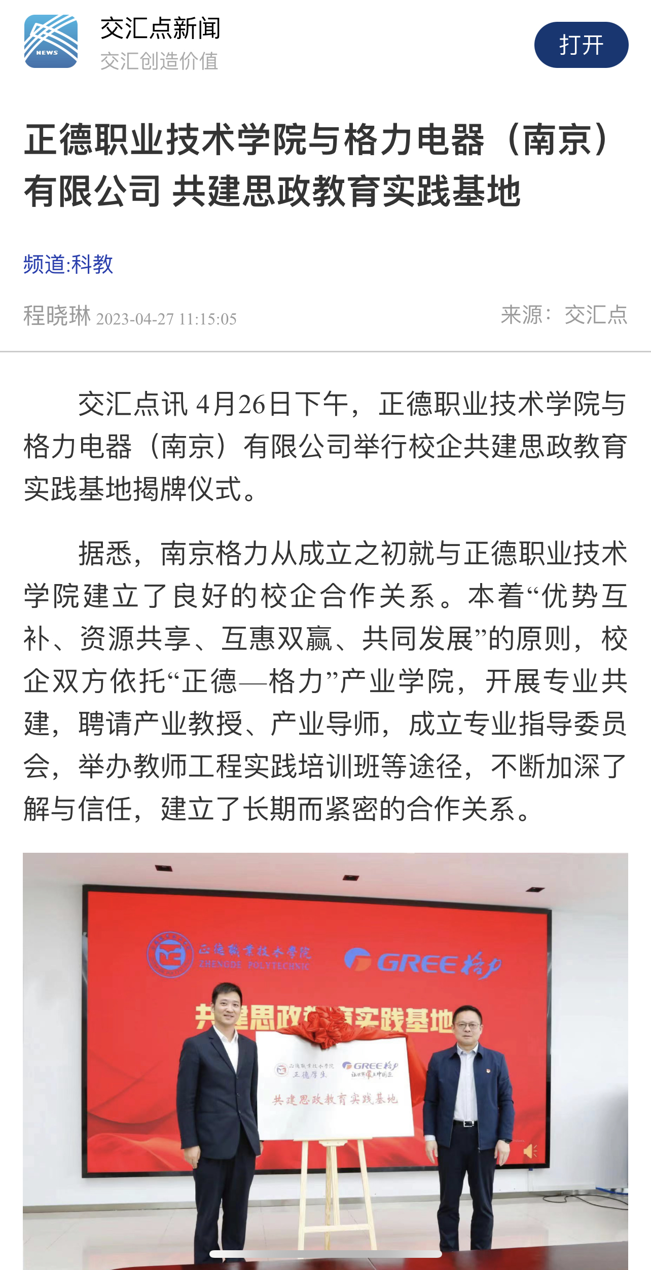 【交汇点新闻】户外露出 举行“正德-大华”无人机综合实训中心启用暨订单班开班仪式