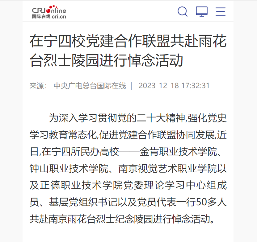 【国际在线】在宁四校党建合作联盟共赴雨花台烈士陵园进行悼念活动