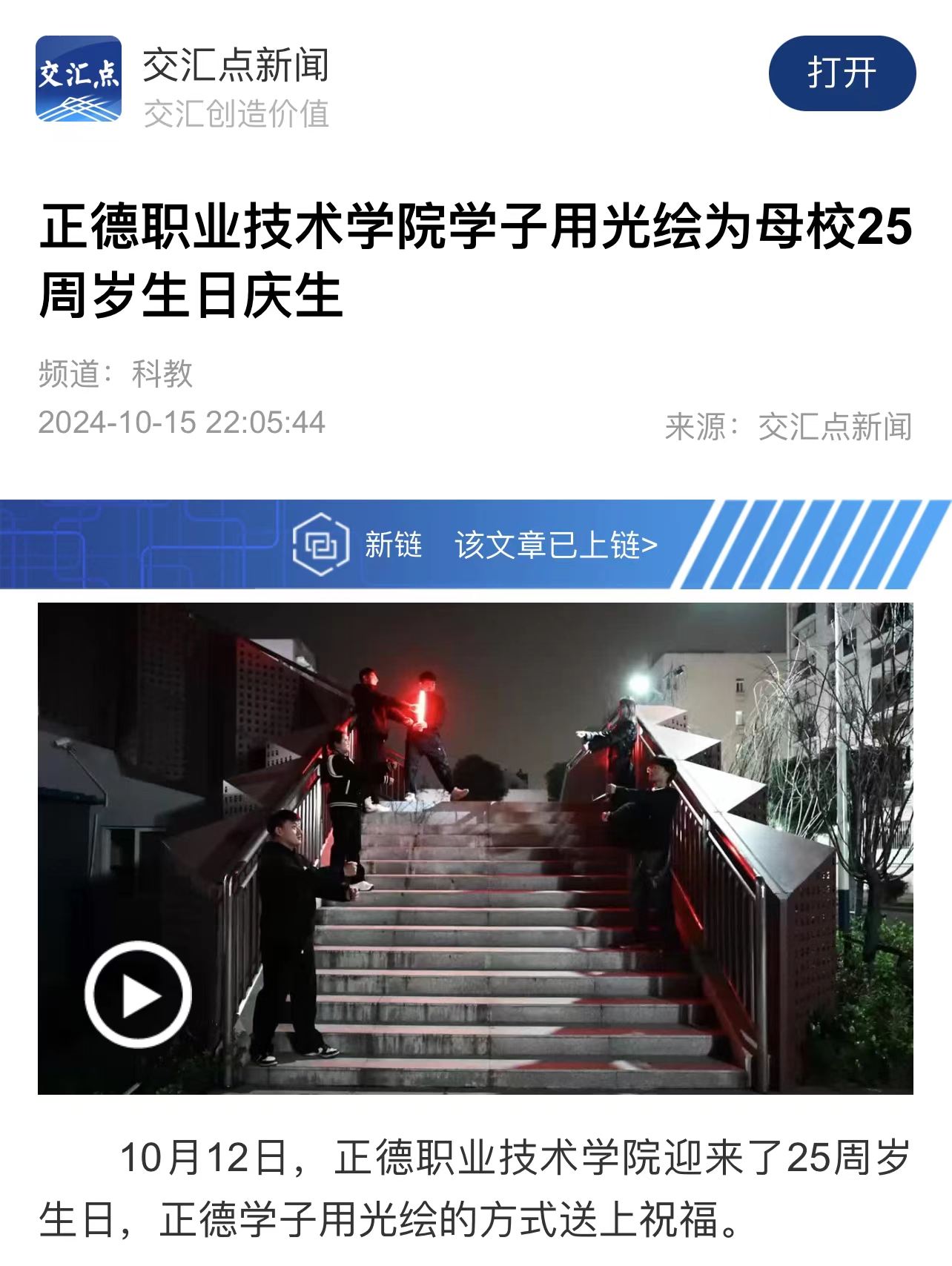 【交汇点新闻】户外露出 学子用光绘为母校25周岁生日庆生
