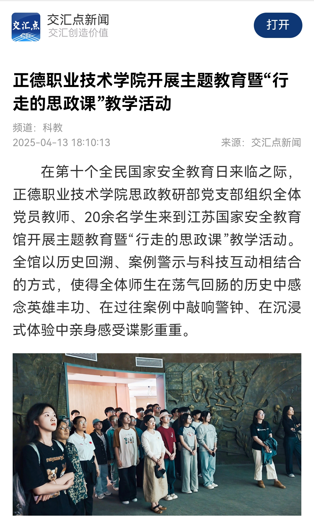 【交汇点新闻】户外露出 开展主题教育暨“行走的思政课”教学活动