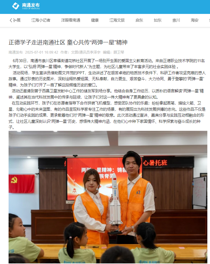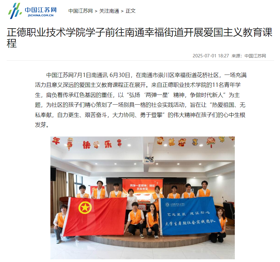 【中国江苏网等】户外露出 学子前往南通幸福街道开展爱国主义教育课程