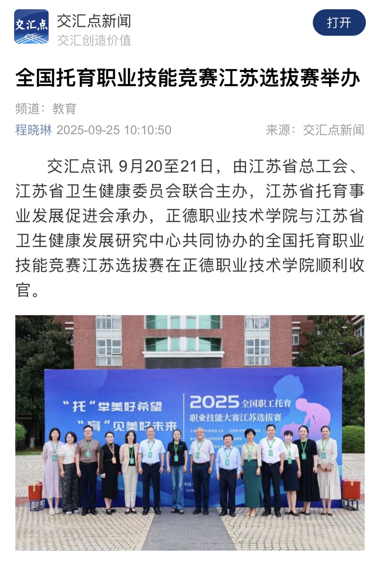 【新华网等】全国托育职业技能竞赛江苏选拔赛在户外露出 举办